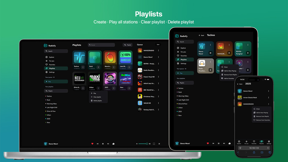 - Create Playlists – Organize stations by mood, genre, or theme.