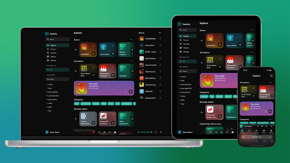 Radiofy is a sleek and modern Web app that lets users stream live radio stations from across the globe. Whether you're into music, news, sports, or cultural broadcasts, Radiofy makes it easy to tune in – all online, all in one place.