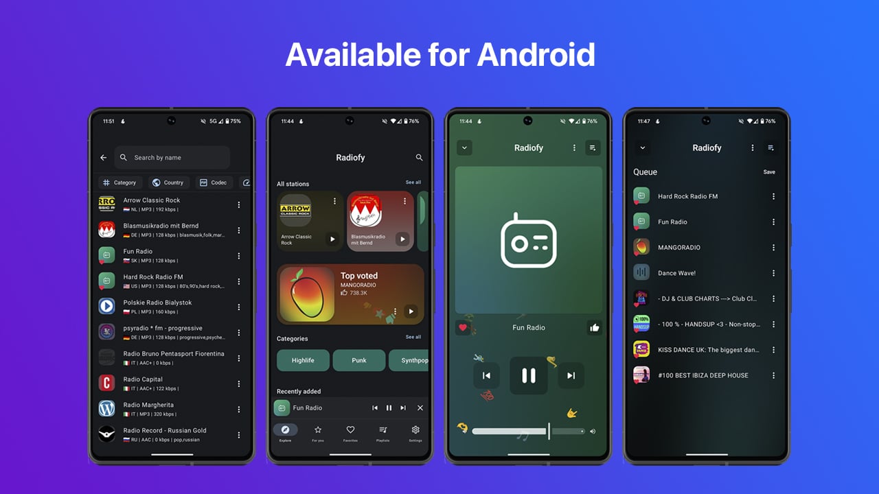 Radiofy is a beautiful, fast and modern web app that lets users stream live radio stations from over 200 countries. With features like favorites, playlists, global search and a responsive design, it’s the ultimate online radio experience built with Next.js & Tailwind CSS.